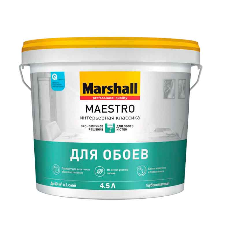 Глубокоматовая водно-дисперсионная краска для отделки всех типов обоев под покраску, а также стен и потолков в помещениях с умеренной влажностью и невысокой экс-плуатационной нагрузкой, не требующих мытья. Обладает высокой адгезией, повышающей срок службы покрытия. Краска легко наносится без разбрызгивания и потеков, не образует следов от инструмента и неравномерно про-крашенных участков на поверхности. Быстро высыхает. Не имеет резкого запаха.