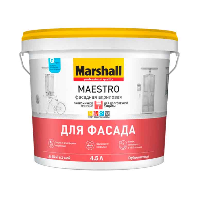 Глубокоматовая водно-дисперсионная акриловая краска для наружных работ. При нанесении образует гладкое высокоукрывистое, атмосферостойкое покрытие,