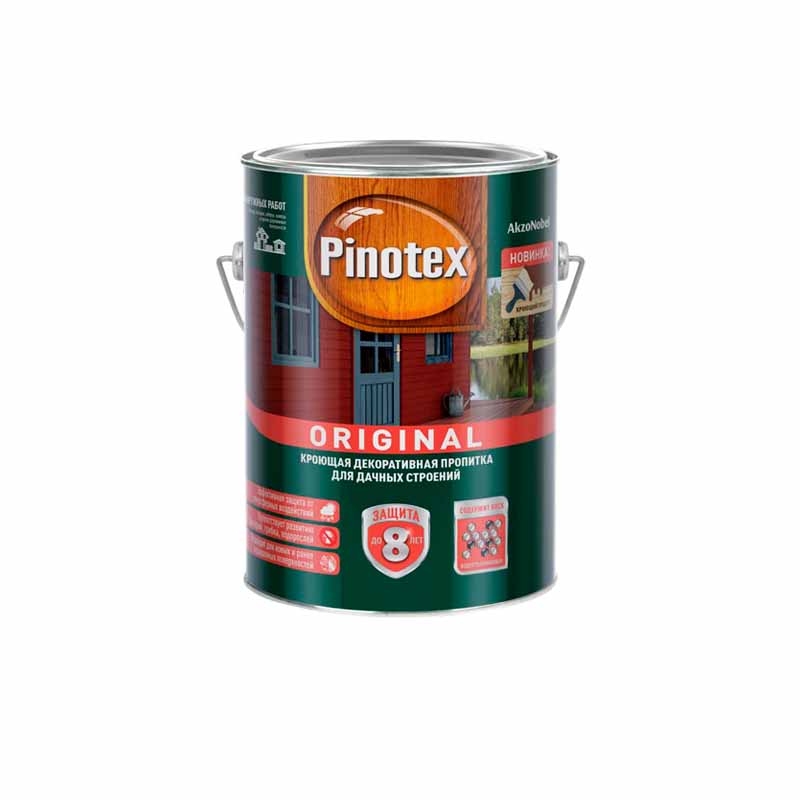 Декоративное покрытие Pinotex Original делает выразитель-ной текстуру древесины, образует полуматовое покрытие, визуально скрывает небольшие дефекты древесины (сучки, пятна, потемнения).